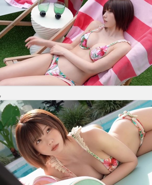 最新グラビアでは、Tバックで、紐をずらして、お尻丸出しに・・